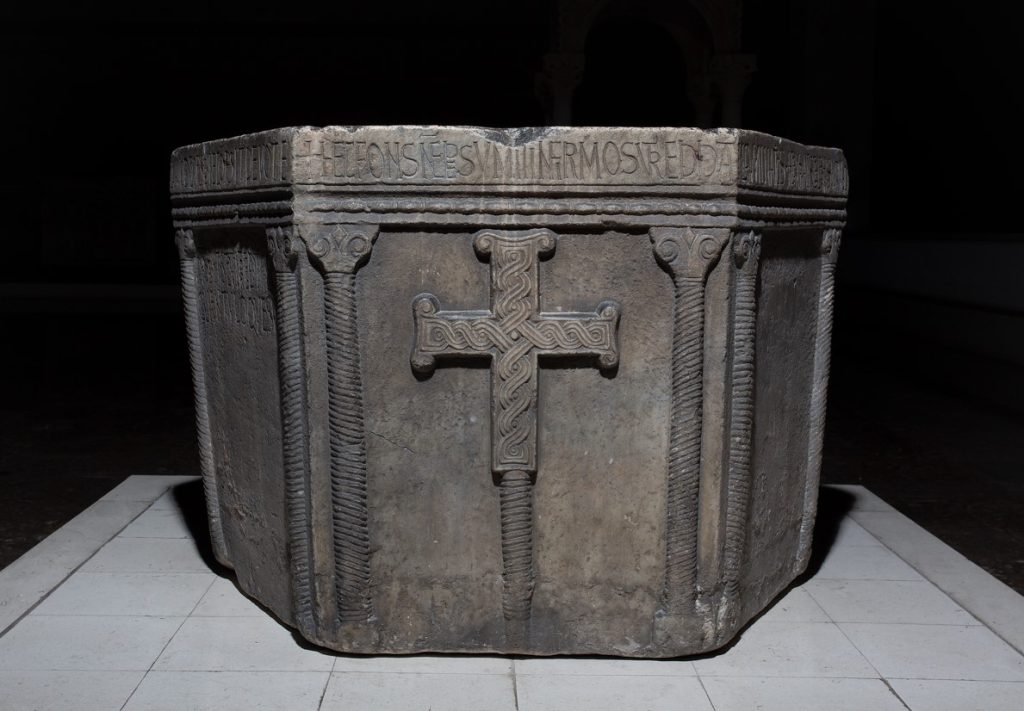 Ova krstionica ili krsni zdenac s reljefno uklesanim križem ispunjenim ornamentom troprute pletenice te natpisom na latinskom jeziku s imenom kneza Višeslava (VVISSAS CLAVO DVCI) jedan je od najvažnijih spomenika hrvatske kulture ranog srednjeg vijeka.