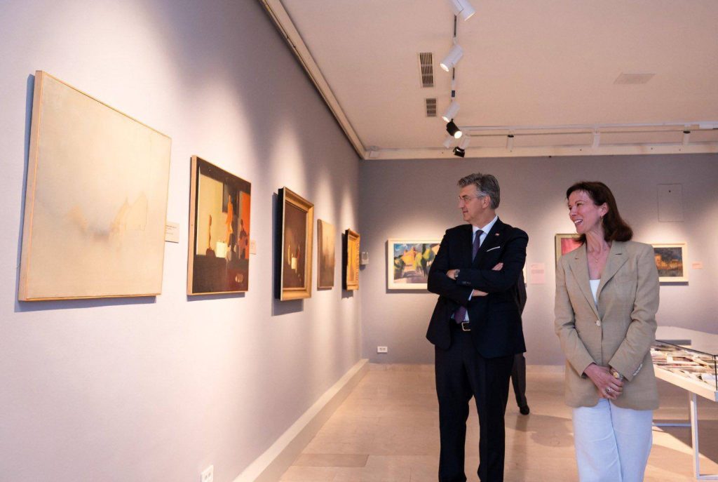 Yesterday, on June 27th 2025, the exhibition “Kviz Collection – little treasury of Croatian painting” was visited by the Prime Minister of the Republic of Croatia, Mr. Andrej Plenković, and the Minister of Culture and Media, Nina Obuljen Koržinek, PhD. Led by the Director of the Gallery, Mr. Antonio Picukarić, and the author and curator of the exhibition, Petra Vugrinec, PhD, they viewed the largest private donation of an art collection in Croatia in recent decades, and thanked Mr. Boris and Mrs. Jelva Kviz for their generous gesture.