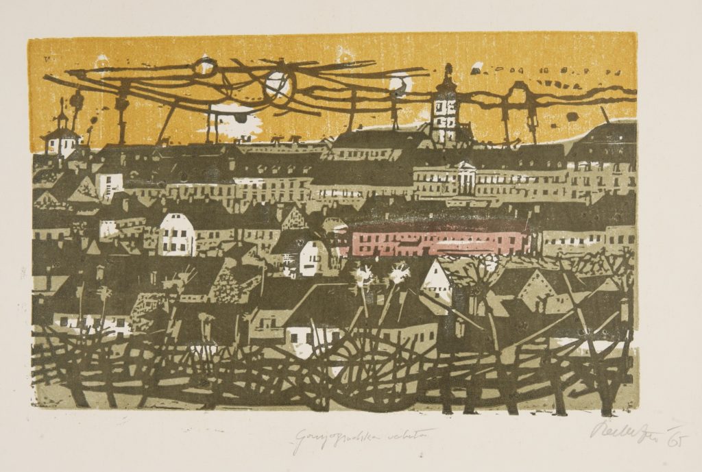 Josip Restek, Gornjogradska veduta, iz grafičke mape “Zagreb”, 1965.